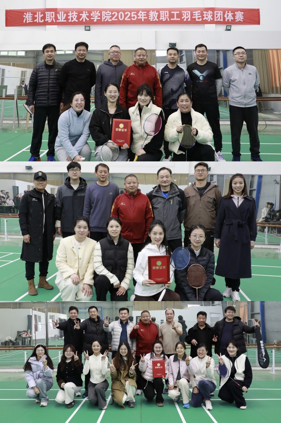 此次羽毛球比赛生动践行了体育强国建设中关于全民健身、活力中国的时代号召,彰显了我院教职工昂扬奋进、锐意进取的精神气象,有力激发了广大教职工投身体育锻炼的热情,进一步增进了部门间的交流和友谊,为构建和谐奋进的淮职校园文化注入了生机与活力。